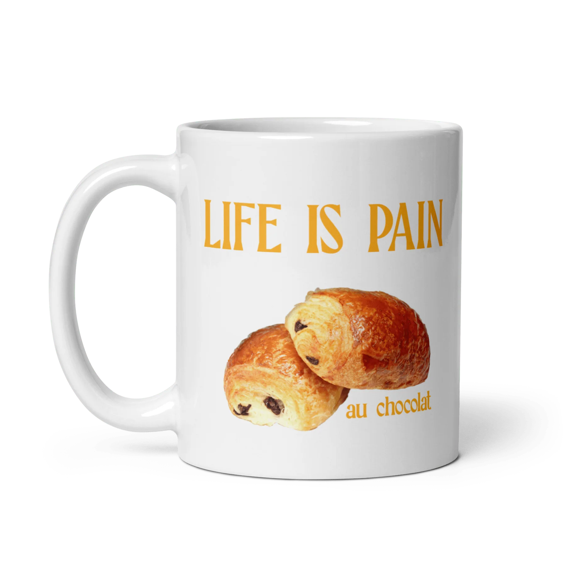 We made this Life is Pain (au chocolat) mug to enjoy with croissants (and pain).